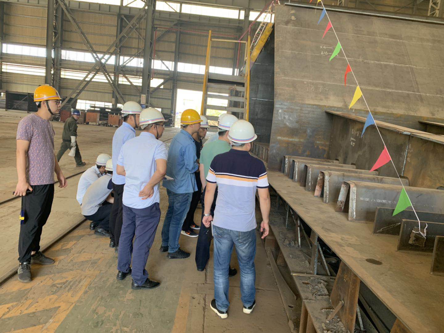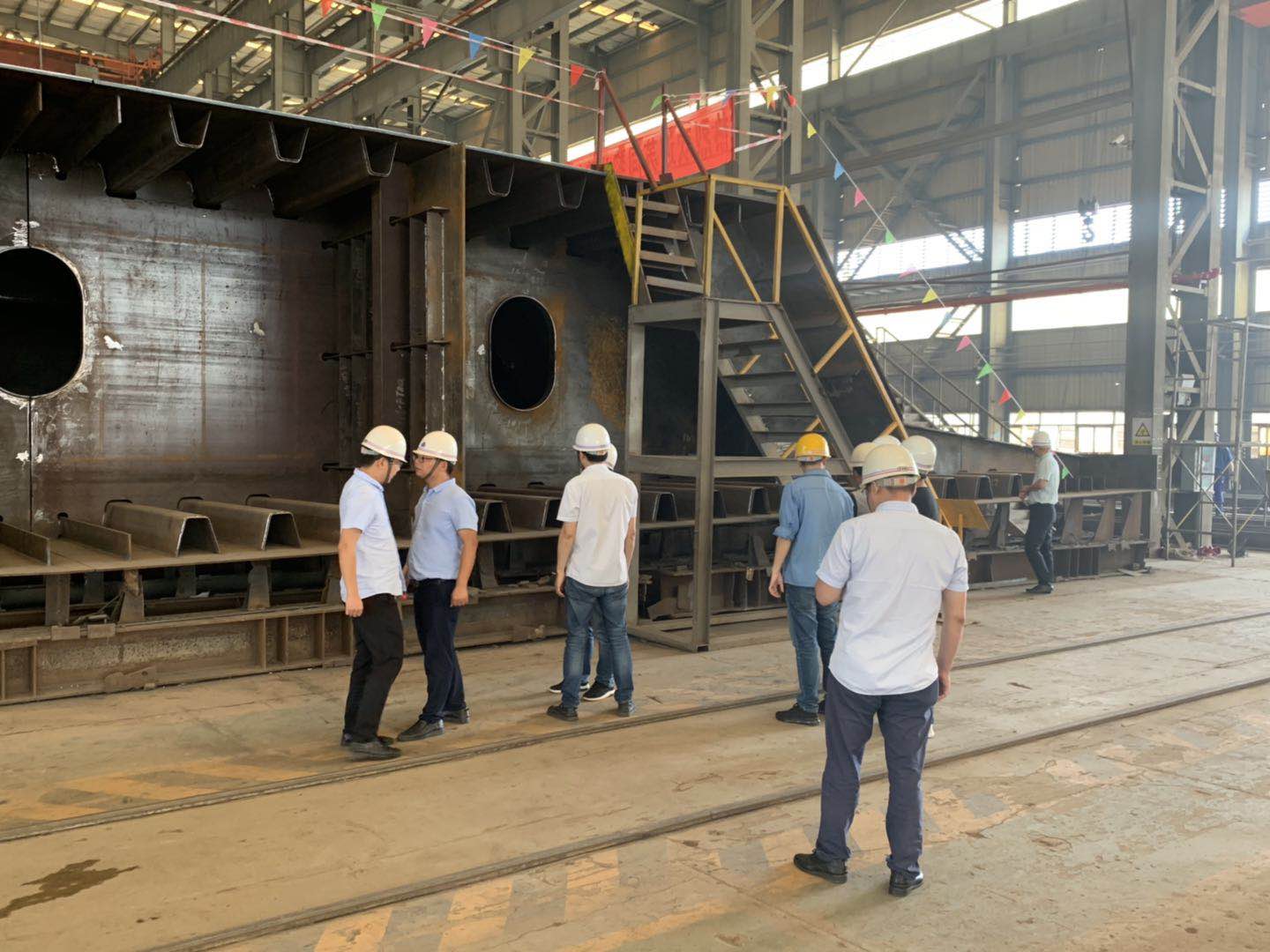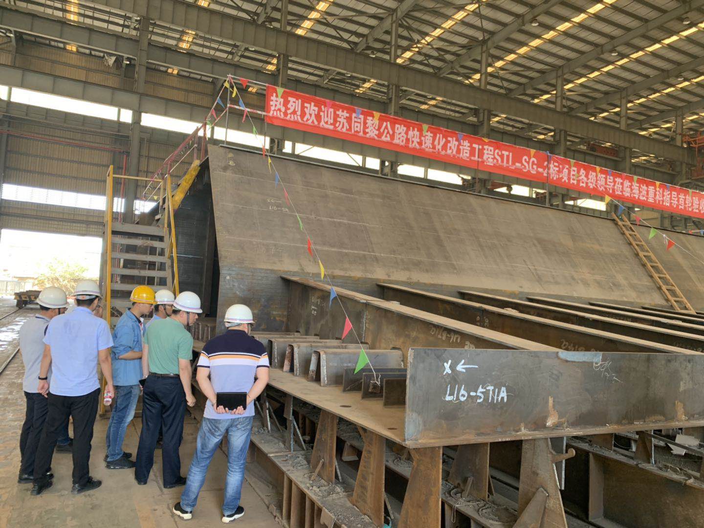 2019年7月10日,江蘇緯信工程咨詢有限公司組織在海波重科召開蘇同黎公路快速化改造工程STL-SG-02標(L16聯(lián)5-9節(jié)段)首輪制造總結(jié)會,與會人員查看了現(xiàn)場首輪鋼箱梁構(gòu)件,聽取了制造單位的匯報,審閱了相關(guān)資料,討論形成最終意見:《蘇同黎公路快速化改造工程STL-SG-02標工程鋼箱梁首輪制作施工》內(nèi)容齊全,資料詳實;首輪鋼箱梁(L16聯(lián)5-9節(jié)段)整體尺寸、線形符合設(shè)計及規(guī)范要求;構(gòu)件檢驗資料齊全有效,結(jié)構(gòu)、外觀良好,焊縫無損檢測合格。如圖: