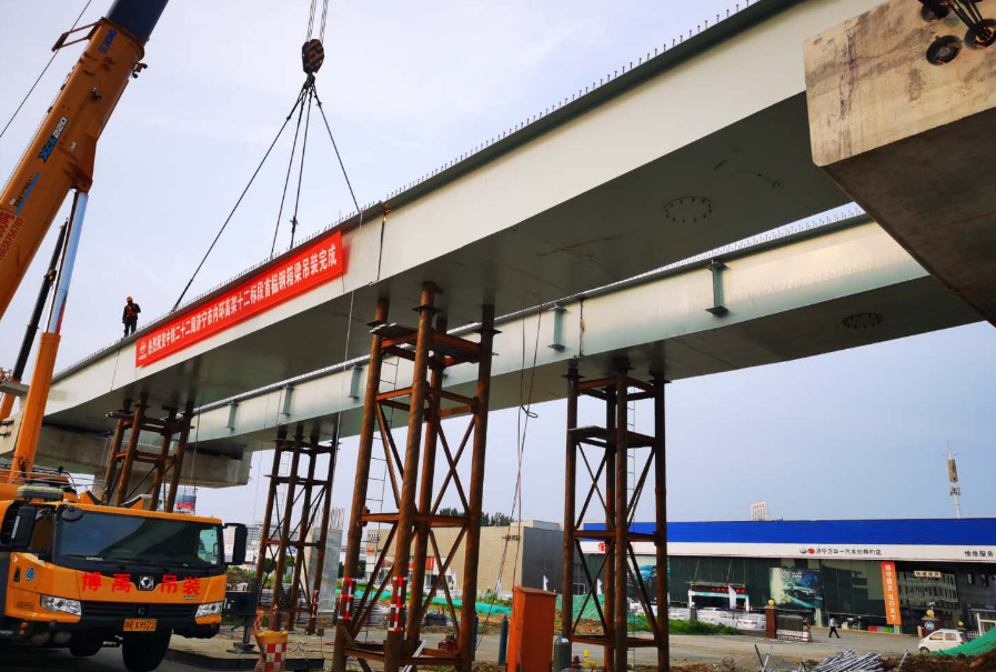 (海波重科新聞報(bào)道)2020年7月7日,由海波重科承建的濟(jì)寧西外環(huán)十二標(biāo)段鋼箱梁項(xiàng)目首吊成功,這也標(biāo)志著濟(jì)寧市預(yù)計(jì)年底建成通車(chē)的目標(biāo)又邁向了一大步。