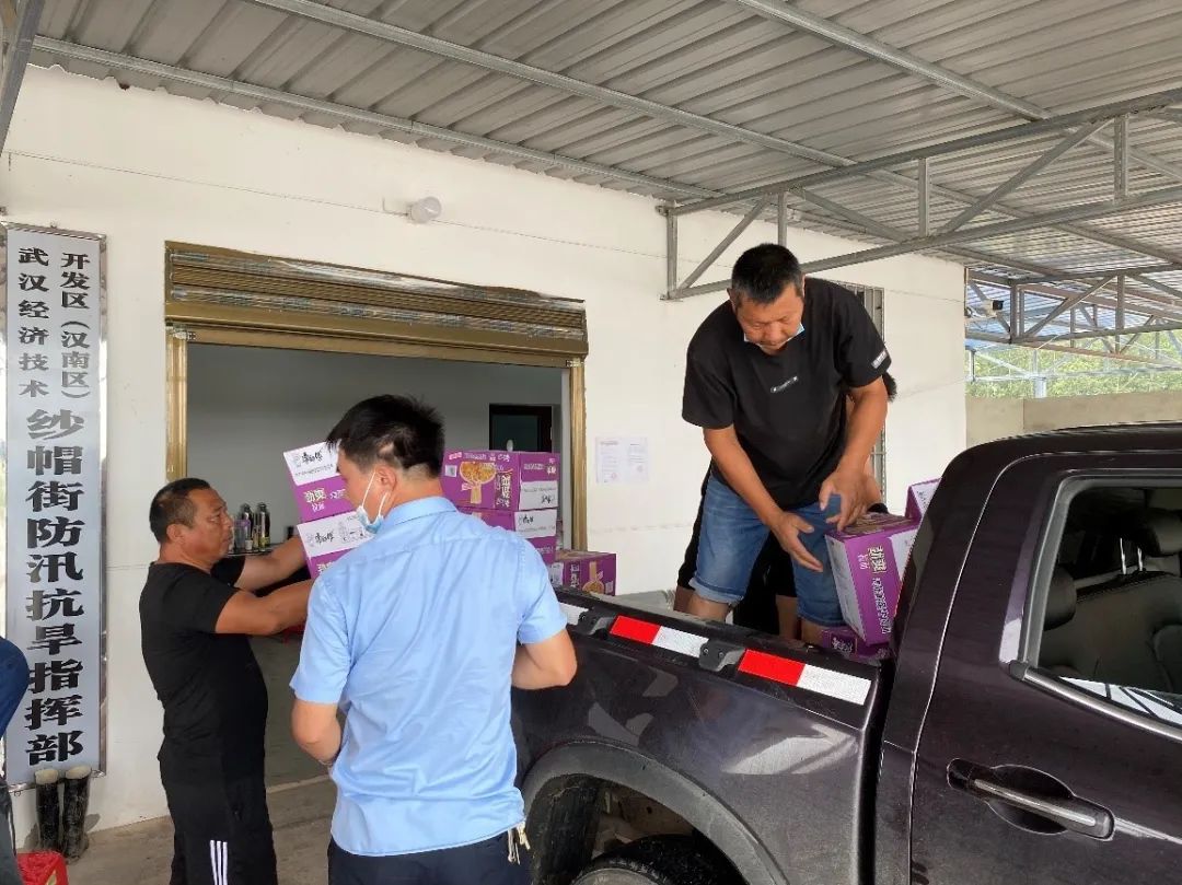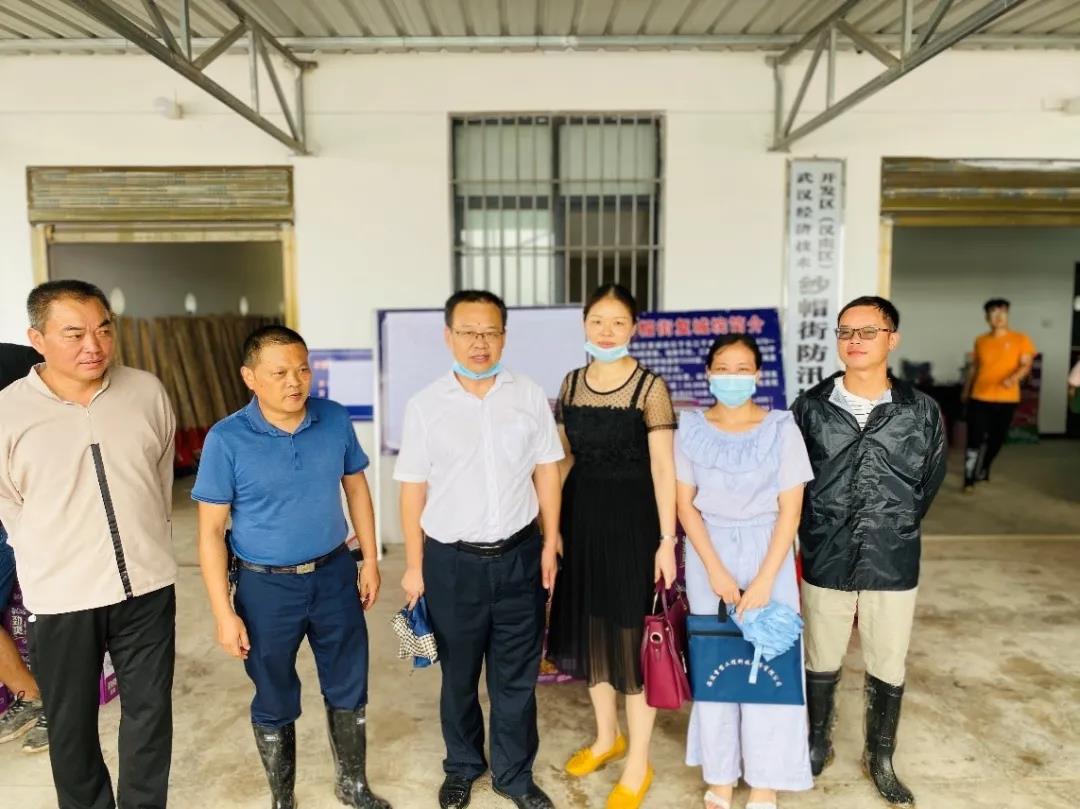 (海波重科新聞報道)2020年7月11日上午,海波重科總經理助理楊世珍攜人力資源部部長張妞妞赴堤防漢南總段復城院分段慰問海波重科一線抗洪搶險突擊隊,武漢開發區通用航空及衛星產業園主任王家茂攜園區辦公室主任魏磊,常務副總指揮張成軍,副總指揮章良文,副總指揮曾本堂,海波重科前線指揮部總指揮李晨光及一線領導做接待工作。