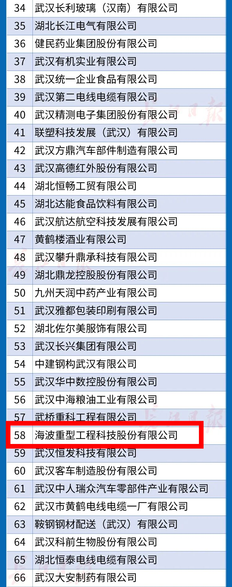 (海波重科新聞報道)2020年9月24日,武漢市公布2020年100強企業(yè)名單,本屆綜合百強入圍門檻為營業(yè)收入35.81億元,比上屆入圍門檻提高了1.71億元;綜合百強總營業(yè)收入27074.28億元,同比增長8.24%;綜合百強資產(chǎn)總額44914.55億元,同比增長9.71%。海波重科再次摘得武漢制造企業(yè)百強榜單第58名。2020我們從戰(zhàn)疫到戰(zhàn)汛,風雨兼程、負重加壓、爬坡邁坎,2020危難關頭我們精細管理、信息引吭、與巨人同行。