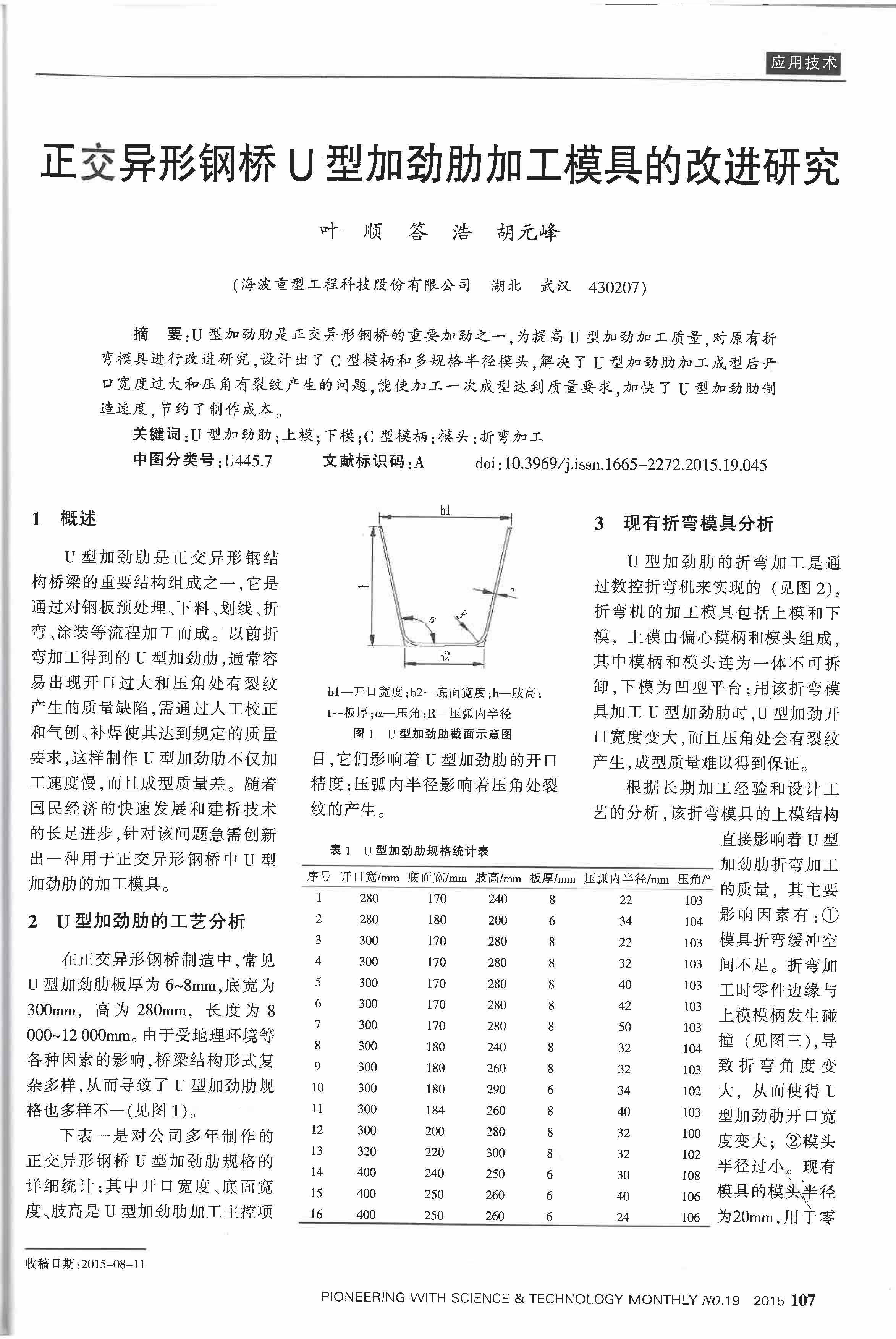 正交異形鋼橋U型加勁肋加工模具的改進研究
